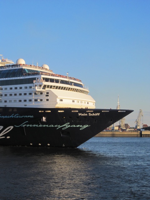 Wie auf Bestellung – und passend zum Theaterstück – legte am nebenan gelegenen Kreuzfahrt-Terminal noch so ein Malle-Riese ab und es wurden ordentlich Taschentücher geschwenkt.