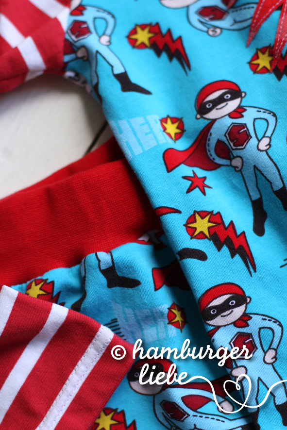 Dass er es jetzt endlich auf Stoff geschafft hat, freut mich riesig und ich hoffe, auch die Jungs-Mamas unter euch. Supahero ist übrigens nicht nur cool für kleine Windelpopos. Mein mittlerweile gar nicht mehr so kleiner Glücksritter findet den mit 8 Jahren auch noch cool und freut sich sehr, dass ich ihm auch mal wieder was genäht habe.