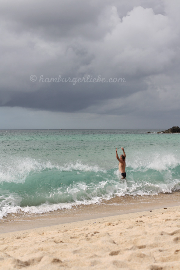 Stellt euch vor, das Meer hat ca. 12 bis 14 Grad, der große Zeh ist augenblicklich schockgefrostet. Also gefühlt. Die Luft hat angenehme 16 Grad, auch auf dem letzten Bild.